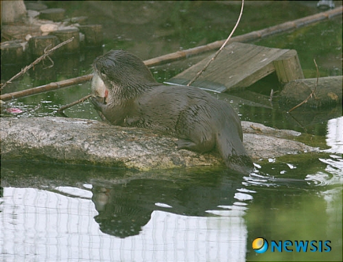 【화천=뉴시스】한윤식 기자 =13일 오후 강원 화천군 하남면 거례리 (사)한국수달보호협회(회장 한성용)에서 보호 중인 수달이 배스물고기를 맛있게 먹는 모습이 카메라에 잡혔다. 천연기념물 제330호 수달은 족제비과에 속하는 동물로 일본에서는 이미 멸종된 것으로 알려져 있으며 우리나라에서는 아직 북부 및 중부, 부산 장림, 강릉, 지리산 등지에서 눈에 띄나 희귀종이다.