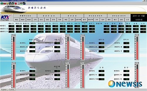 【대전=뉴시스】박희송 기자 = 지난 2월 광명역 KTX탈선 사고 등 철도 안전에 대한 걱정의 목소리가 높아지고 있는 가운데 코레일이 안전한 철도로 국민의 신뢰를 회복하고 세계에서 가장 뛰어난 철도를 만들기 위해 현장 중심의 안전 활동을 활발하게 전개하고 있다. 사진은 레일온도검지장치로, 레일에 설치된 온도센서가 실시간으로 레일의 온도를 검지, 철도관제센터에 표출된다. (사진=코레일 제공)