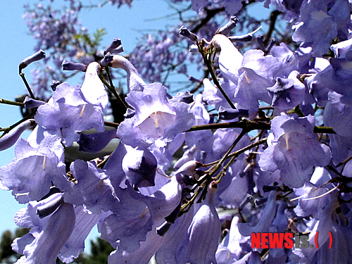【L.A(미국)=뉴시스】김운영 편집위원 = 8일(현지시간) 보라빛 초롱 꽃송이의 자(하)카란다가 5월 LA 도심을 장식하고 있다. 푸른 하늘보다 진한 보라빛 Jacaranda(자카란다-하카란다)의 은은한 향기가 LA 다운타운의 아침공기를 한층 신선하게 한다. 히스패닉계 사람들은 하카란다로 부르기도 한다. 몇몇 주민들은 담장 컬러를 자카란다 색으로 바꾼다. 5월 한달 꽃 그늘이 초여름의 더위를 식혀준다.