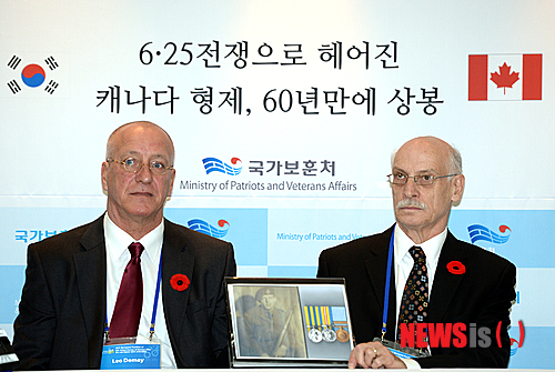 6·25전쟁에서 전사한 캐나다 참전용사 앙드레 레짐발드 이병과 고인의 약혼녀 사이에 태어난 이들 형제는 각기 다른 가정에 입양됐다가 국가보훈처가 유엔기념공원 안장자 유족 초청행사에 두 형제를 초청해 한국에서 60년 만에 만남이 이뤄졌다. 2013.11.08.