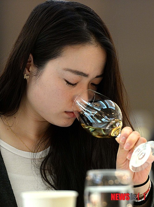 【서울=뉴시스】고범준 기자 = 27일 오전 서울 임피리얼 팰리스호텔에서 열린 '2014 제13회 한국 소믈리에 대회'에서 참가자들이 블라인드 테이스팅을 하고 있다.
