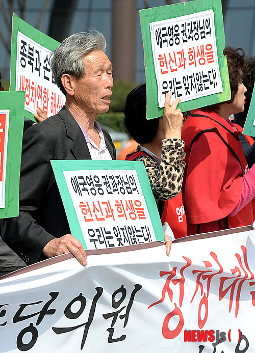 이들은 "정철래 의원이 국가정보원의 이름을 공개했다"며 규탄했고 "국가안보 필수 기관인 국정원을 더 이상 흔들지 말 것"을 주장했다. 2014.03.28.