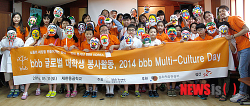 이번 ‘멀티 컬처 데이’는 비비비(BBB)코리아의 대학생 봉사단 bbb 프로보노가 주축이 돼 재한몽골학교 재학생, 외국인 유학생, 한국인 대학생 등 총 60여 명이 참여했다. 실크로드를 테마로 진행된 이번 행사에서 참가자들은 중국 ‘콩쥬’, 베트남 전통 제기차기 등 세계 전통 민속 놀이 체험, 한국 전통 탈 만들기, 몽골 전통 노래 배우기 등 다양한 세계 문화를 경험하고 유대감을 형성하는 시간을 가졌다. 2014.06.01. (사진=비비비 코리아 제공)