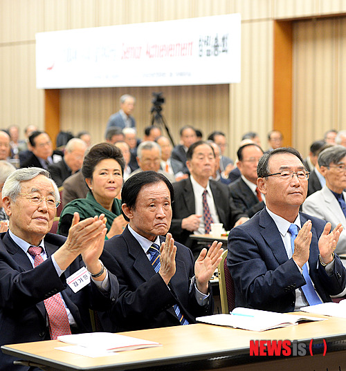 참석자들이 강경식 국가경영전략연구원 이사장의 개회사를 경청하며 박수를 치고 있다. 2014.10.07.