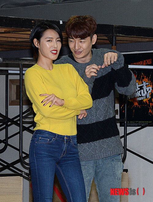 【서울=뉴시스】조수정 기자 = 뮤지컬 '올슉업(ALL SHOOK UP)' 출연진이 30일 오후 서울 연지동 아리온 연습실에서 공연 연습을 하고 있다. 사진은 배우 손호영과 가희.
