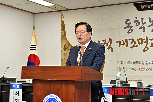 정 의장이 주최한 이번 세미나는 동학농민혁명 120주년을 맞아 그 의미를 되새기고 오늘날의 한국정치에 주는 시사점을 모색하기 위해 마련됐다. 2014.12.29. (사진=국회대변인실 제공)