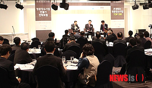 【서울=뉴시스】4일 서울 서초구 팔래스호텔 다이너스티홀에서 열린 '제4회 명문장수기업 만들기 전략포럼'에 참석한 이윤철 산업정책연구원 이사장, 왕한길 이현세무회계법인 상무, 기승준 미래에셋증권 본부장이 '가업승계의 다양한 유형과 전략'을 주제로 토론을 하고 있다. 2015.02.04. (사진=한국중견기업연합회 제공)