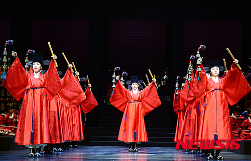 종묘제례악은 조선왕조의 역대 제왕과 왕후의 신주를 모신 사당인 종묘에서 그들을 기리는 제사를 뜻하며, 오는 9월18일부터 19일까지 한-불수교 130주년 ‘2015-2016한-불 상호교류의 해’ 개막작으로 프랑스 국립샤이오극장에서 공연한다. 2015.06.11.