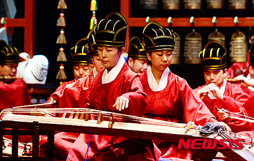 종묘제례악은 조선왕조의 역대 제왕과 왕후의 신주를 모신 사당인 종묘에서 그들을 기리는 제사를 뜻하며, 오는 9월18일부터 19일까지 한-불수교 130주년 ‘2015-2016한-불 상호교류의 해’ 개막작으로 프랑스 국립샤이오극장에서 공연한다. 2015.06.11.