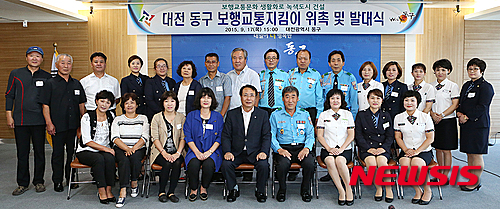 동부모범운전자회, 대전안전생활실천시민연합, 녹색어머니회동부지부 회원 등으로 이뤄진 보행지킴이들은 안전한 보행환경 조성을 위한 지도·홍보활동을 펼칠 예정이다. 2015.09.17. (사진=동구 제공)