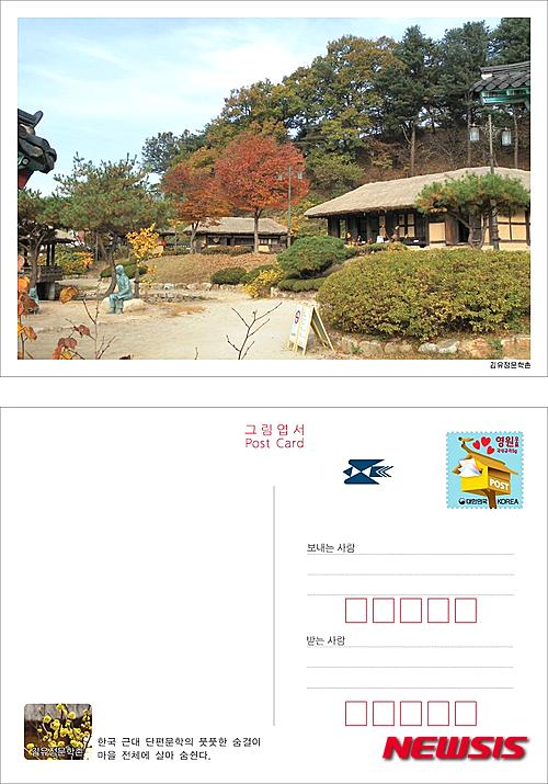 이번 그림엽서는 '봄봄', '동백꽃' 등 수많은 작품을 남긴 한국의 대표적인 문학작가 김유정의 생가에 지어진 문학촌을 배경으로 하고 있다.2015.10.27. (사진=춘천우체국 제공)
