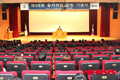 【대전=뉴시스】이시우 기자 = 을지대학교병원(원장 황인택)은 3일 병원 3층 범석홀에서 조우현 을지대학교총장과 병원 교직원 500여명이 참석한 가운데 을지재단 창립 59주년 및 개원 34주년 기념식을 개최했다. 이 자리에서 장기 근속자 및 우수 교원 등에 대한 포상이 함께 이뤄졌다. 2015.11.3. (사진=을지대학교병원 제공)
