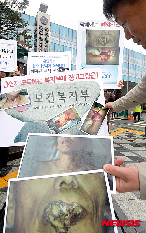 이들은 보건당국의 경고그림이 '지나치게 혐오스럽지 않아야 한다'고 명시한 국민건강증진법의 개정내용을 위반했다며 경고그림 수정을 요구했다. 2016.04.21