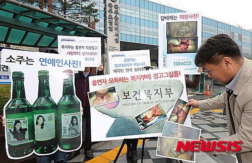 소주엔 연예인사진, 담배엔 '폐암사진'