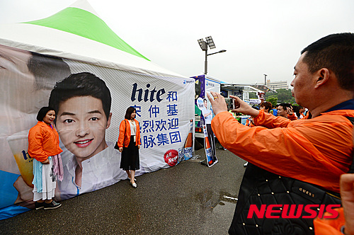기념촬영하는 중마이 그룹 직원들, '송중기 마이 좋아한다'