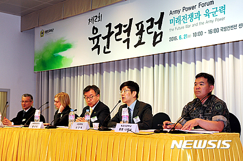 【서울=뉴시스】21일 서울 용산구 국방컨벤션 센터에서 열린 '제2회 육군력포럼'에 참석한 발표자들이 논문을 발표하고 있다.