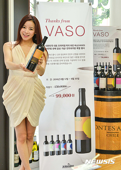 【서울=뉴시스】16일 와인 수입사 나라셀라가 서울 송파구 오금동 와인타임에서 나라셀라를 대표하는 미국 나파밸리 프리미엄 와인 ‘바소’의 10만병 돌파 기념 할인 행사 ‘Thanks from VASO’를 알리고 있다.