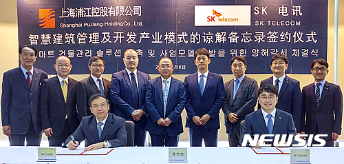 【서울=뉴시스】SK텔레콤(대표이사 사장 장동현)이 9일 건물 내 인원의 안전 및 시설을 관제하는 건물 통합관리 솔루션을 중국 상해의 대형 시설관리 기업인 ‘상하이 푸장 홀딩스(SPH)’에 제공하기로 협약(MoU)을 체결했다고 밝혔다.