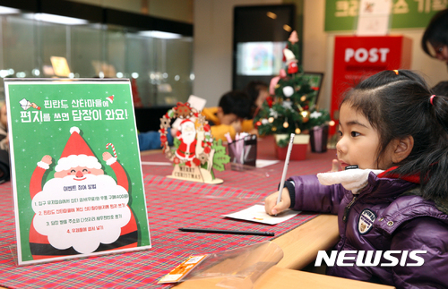 【서울=뉴시스】크리스마스 우표 특별전시회가 23일 중구 서울중앙우체국 우표박물관에서 열려 어린이 관람객이 산타 할아버지에게 편지를 쓰고 있다.