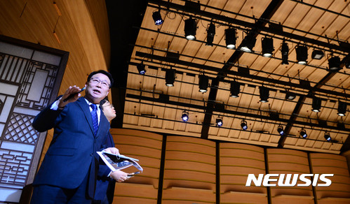 【서울=뉴시스】추상철 기자 = 2017 국립국악원 우면당 재개관 기념 및 신년기자간담회가 열린 7일 오전 재개관을 앞둔 서울 서초구 국립국악원 우면당에서 무대과 오진수 과장이 리모델링된 우면당 공연시설을 설명하고 있다.