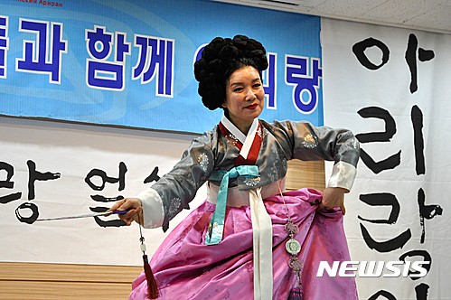 아리&랑무용단장인 김채원은 8일 인천 남동사할린센터에서 펼쳐진 고려인 강제 이주 80주년 사할린 아리랑 순회공연 ‘사할린 동포들과 함께 아리랑’의 연출자이기도 하다. 지난 3·1절 공연에 이은 이날 무대에는 전국아리랑전승자협의회와 각 지역 아리랑보존회가 참여했다.