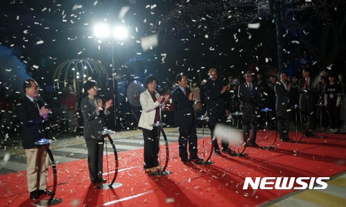 【서울=뉴시스】홍효식 기자 = 지난 8일 오후 경기도 과천시 렛츠런파크 서울에서 40개국 주한외교사절단이 '2017 <말(馬) 그대로 벚꽃> 축제'에 참석해 다채로운 행사를 즐기고 있다. 이번 축제는 지난 8일부터 12일까지 오전10시30분부터 오후 9시30분까지 무료로 열리며, 저녁에는 만개한 벚꽃을 향해 수많은 LED와 음악 향연으로 관객 맞이를 준비하고 있다. 2017.04.09.(사진=한문화진흥협회 제공)