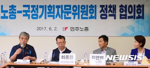 【서울=뉴시스】추상철 기자 =2일 오후 서울 중구 전국민주노동조합총연맹에서 민주노총-국정기획자문위원회 정책 협의회가 열리고 있다.