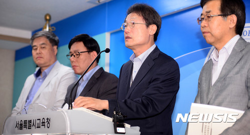 【서울=뉴시스】추상철 기자 = 조희연 서울시교육감을 비롯한 교육청 정책담당 관계자가 20일 오전 서울 종로구 서울시교육청에서 '새 정부 교육공약 이행방안 제안' 기자회견을 갖고 있다.