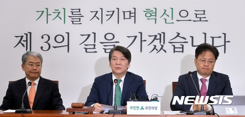 【서울=뉴시스】이영환 기자 = 국민의당 안철수(가운데) 대표가 11일 오전 서울 여의도 국회 국민의당 대표실에서 열린 제6차 최고위원회의에 참석해 발언하고 있다.