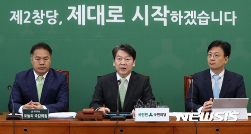 안 대표는 더불어민주당과 연립정부 논의가 오갔다는 주장이 제기된 것에 대해 "장난질을 멈춰라"며, "정부여당이 하는 일은 되는 거 없이 혼란스럽지만 일관성이 있는 것은 협치나 연정으로 말장난하는 것"이라고 말했다. 2017.10.13.