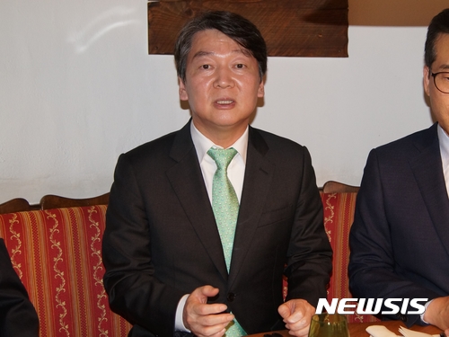 【프랑크푸르트(독일)=뉴시스】김난영 기자 = 안철수 국민의당 대표가 4일(현지시각) 독일 헤센평화갈등연구소 한반도 문제 및 핵안보 분야 전문 수석연구원인 한스 요아힘 슈미트 박사와의 오찬간담회 모두발언을 하고 있다.