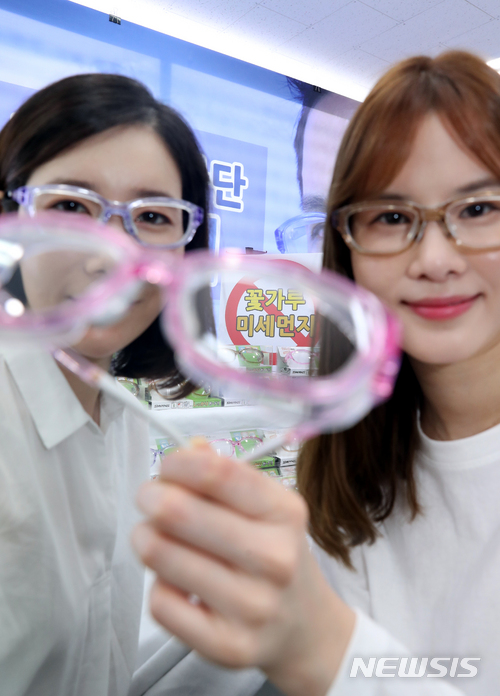 【서울=뉴시스】이종철 기자 = 1일 서울 명동 아이닥 안경에서 모델들이 내면에 실리콘 내피가 부착돼 있어 미세먼지와 꽃가루가 눈으로 들어가는 것을 막아 주도록 설계되어 있는 ‘스완스 방풍 안경’을 선보이고 있다.