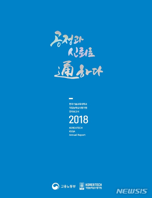【천안=뉴시스】이종익 기자 = 충남 천안의 코리아텍(총장 이성기)은 18일 직업훈련 심사평가 사업의 1년간 성과를 정리하고 올해 직업훈련 심사평가 추진계획 등을 담은 '2018년도 직업능력심사평가원 연차보고서'를 발간했다. 국내 직업훈련 연구에 도움을 주기 위한 이번 보고서의 표지다. 2019.03.18. (사진=코리아텍 제공)