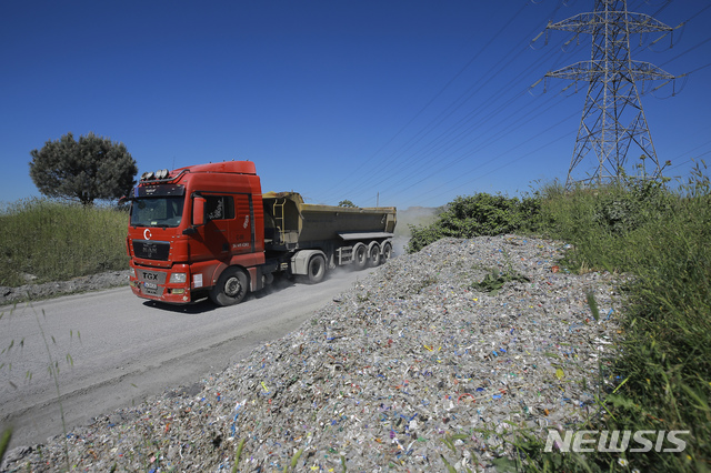 [이스탄불=AP/뉴시스]19일(현지시간) 터키 이스탄불 외곽 알리베이코이 댐 근처 불법 쓰레기 처리장에서 트럭 한 대가 쓰레기 내릴 준비를 하고 있다. 터키 정부가 이날 에틸렌 폴리머 플라스틱 폐기물 수입을 금지하겠다고 밝히자 환경단체 그린피스는 "'폐기물 수입 제로' 목표를 향한 매우 중요한 조치"라며 환영의 뜻을 밝혔다. 2021.05.20.