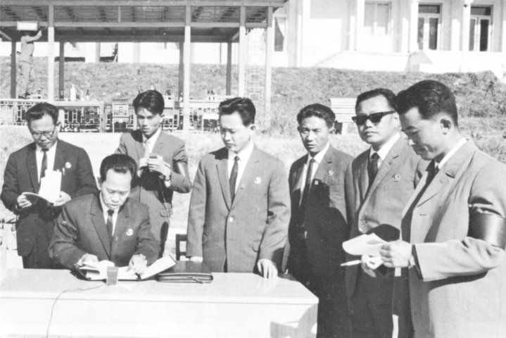 [서울=뉴시스] 통일부가 1970년대 초반 남북 회담 문서와 사진 일부를 4일 공개했다. 이날 공개된 남북 회담 문서 일부는 남북대화 사료집 제2·3권이며 1970년 8월부터 1972년 8월까지 기록된 내용이다. 사진은 북한적십자사대표단 대변인 기자회견 모습. (사진=통일부 제공) 2022.05.04. [email protected] *재판매 및 DB 금지
