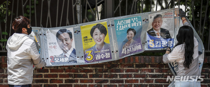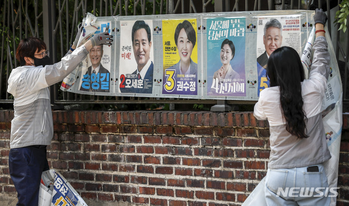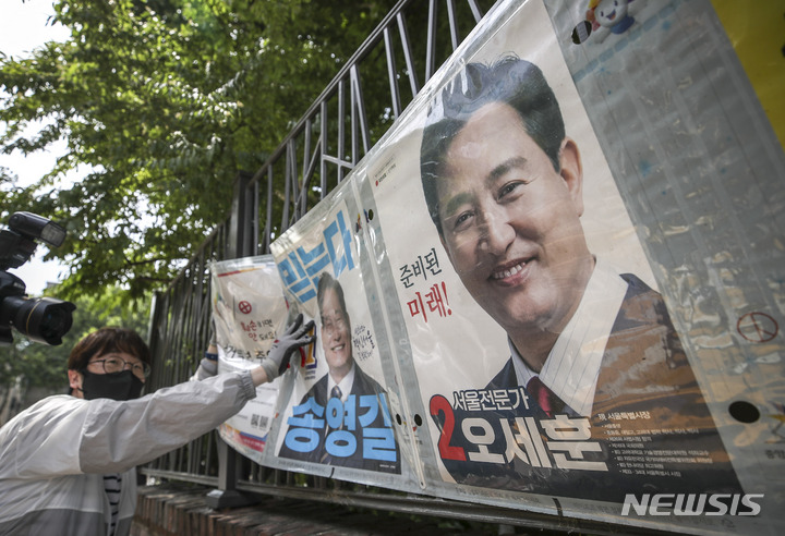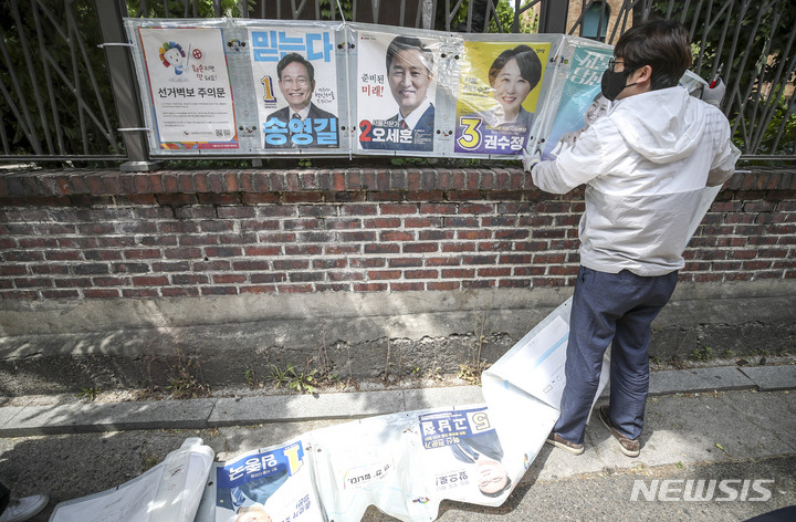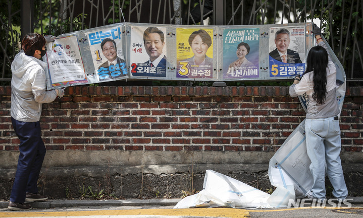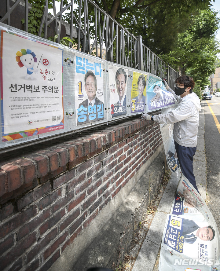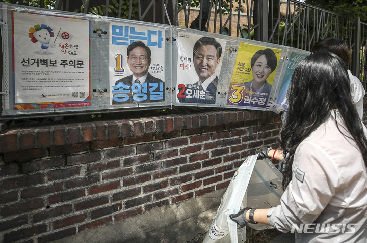 제8회 전국동시지방선거 벽보 철거하는 관계자들