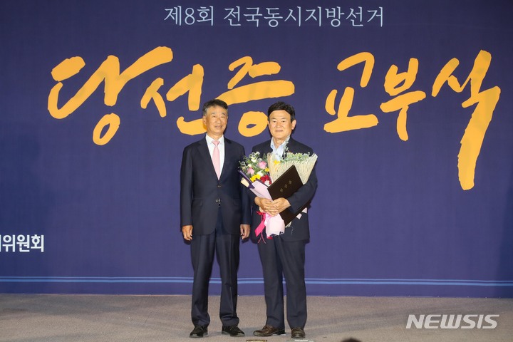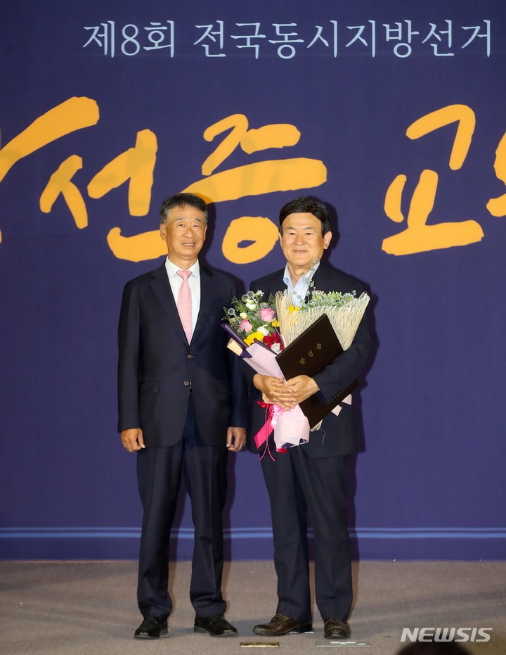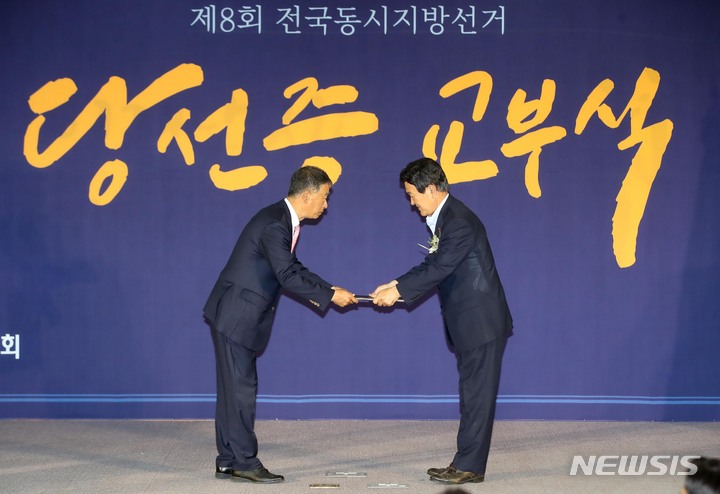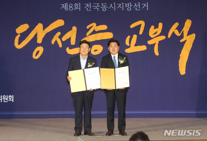 당선증 받은 오영훈 제주도지사-김광수 제주도교육감