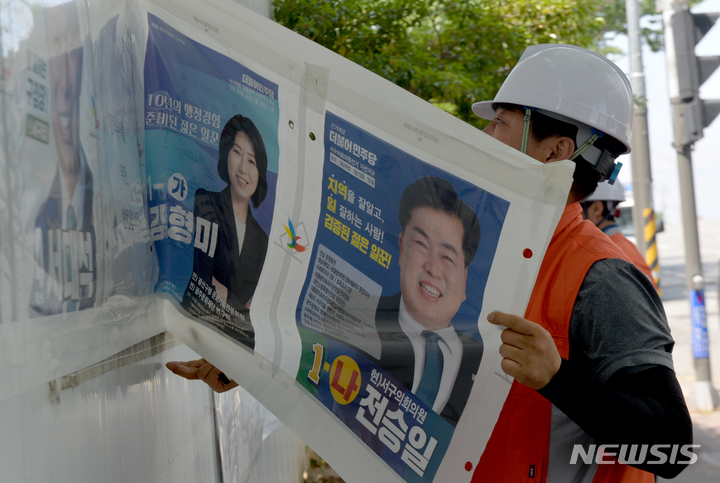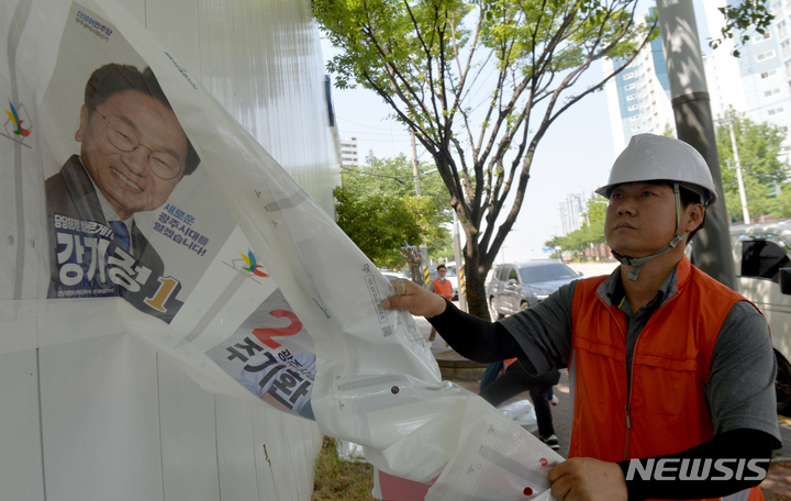 '막 내린 풀뿌리 민주주의 축제' 선거 벽보 철거
