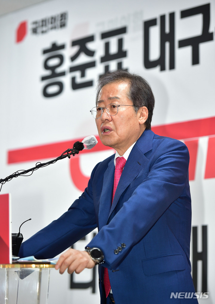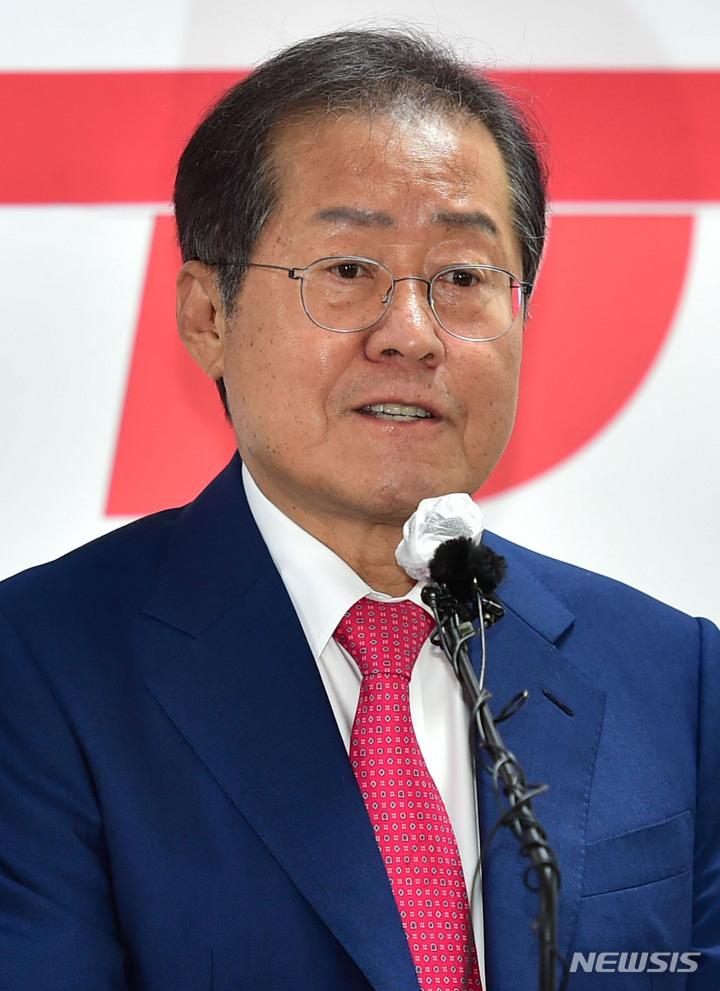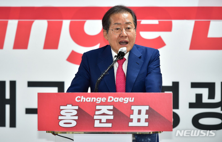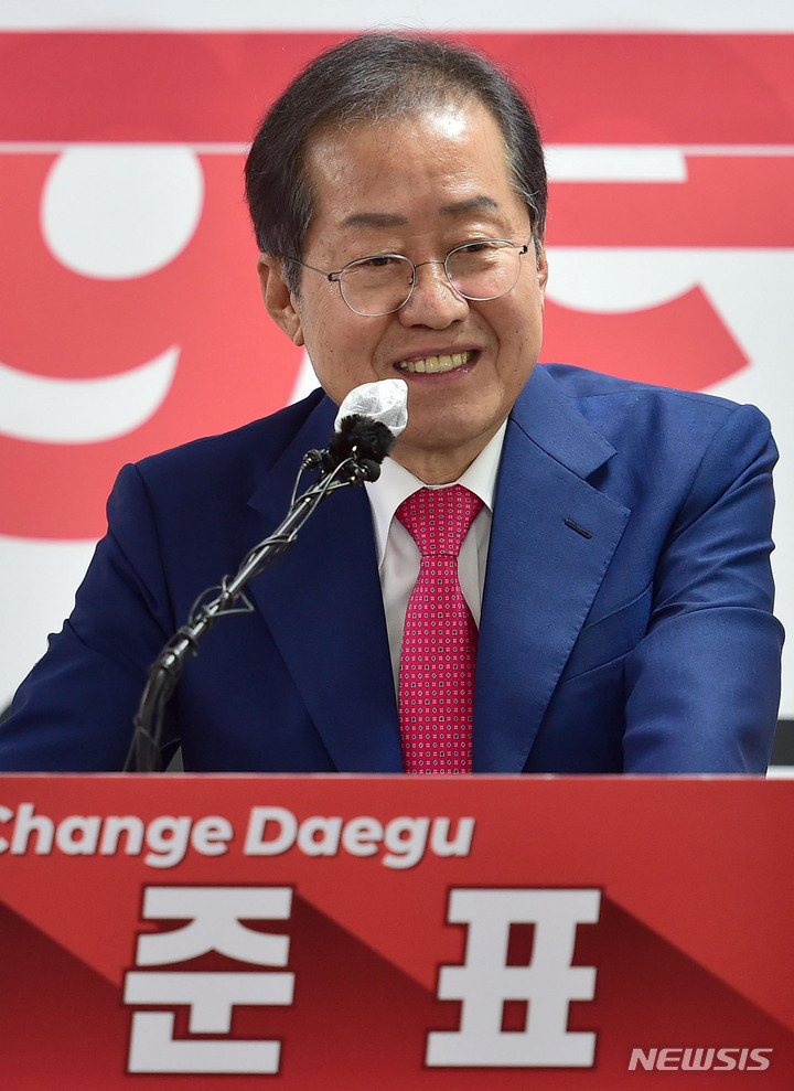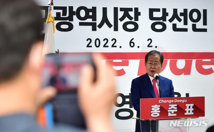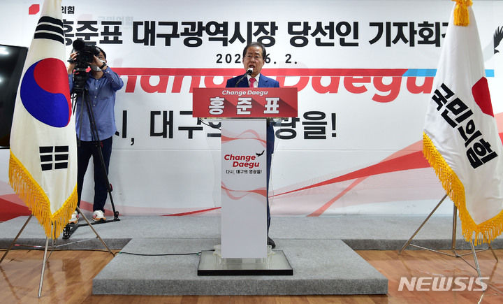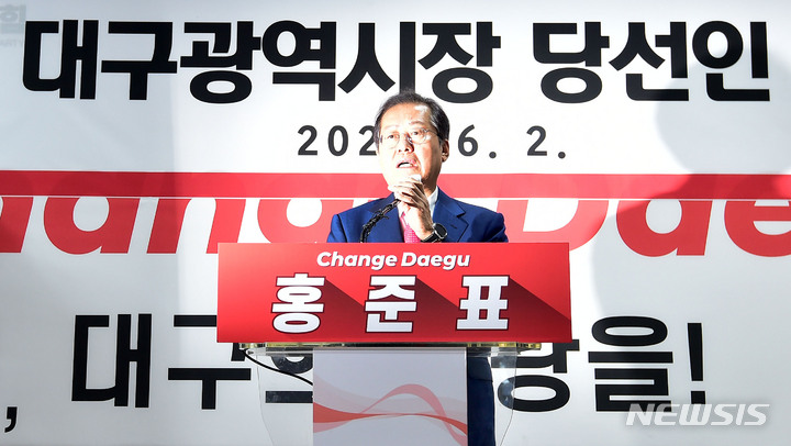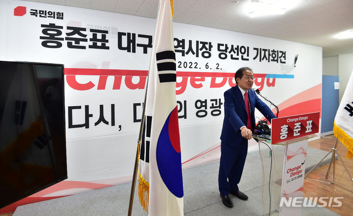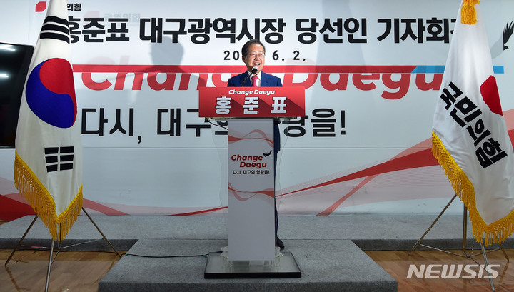당선 소감 밝히는 홍준표 대구시장 당선인