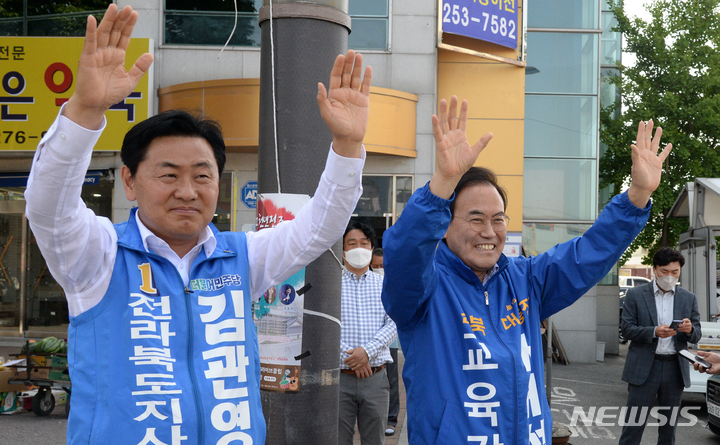 '시민들에게 감사 인사 전하는 김관영, 서거석 당선인'