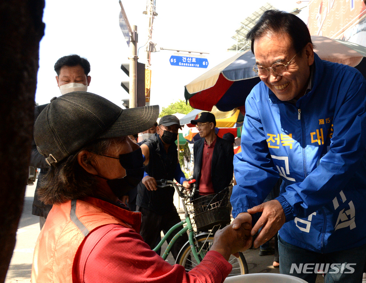 '시민들과 악수 나누는 김관영 더불어민주당 전북도지사 당선인'