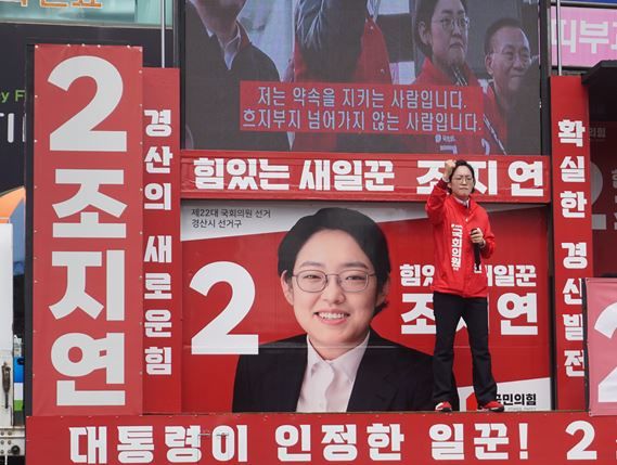 그는 경북 경산역 광장에서 "제가 무소속 복당에 대한 원칙을 이미 확실하게 말씀드렸다"며 "지금 경산의 유일한 국민의힘 후보, 여러분이 뭉쳐주셔야 할 대상은 누군가"라며 최경환 무소속 후보와 경쟁하고 있는 조지연 후보에 대한 지지를 호소했다.