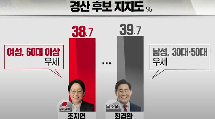 부산의 경우 18곳 중 9곳에서 우세한 것으로 보고 있다. 여기엔 해운대갑(주진우), 부산진을(이헌승), 사하을(조경태), 금정(백종헌), 서·동(곽규택), 강서(김도읍), 북을(박성훈), 사상(김대식), 수영(정연욱) 등이 포함된다.