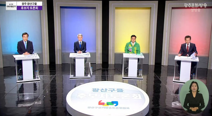 사전투표를 하루 앞둔 4일 광주 광산을 선거구 민형배 더불어민주당 후보와 이낙연 새로운미래 후보가 선거방송토론에서 '민주당 공천 문제', '공약' 등을 놓고 격돌했다. 안태욱 국민의힘 후보는 여당 후보들이 '정권 심판론'으로 정치선동을 하고 있다고 비판했으며, 김용재 녹색정의당 후보는 사회적 약자를 위한 정당에 투표해 달라고 차별화 했다. 이날 오후 광주MBC에서 선관위 주관 방송토론이 열린 가운데 주도권 토론에서 이낙연 후보가 민형배 후보에게 먼저 포문을 열었다. 이 후보는 "민 후보의 2020년 지난 총선 공보물을 보면 첨단산업 활성화, 대학병원급 대형병원 유치 등이 있는데, 이번에도 같은 공약이 있다"며 "당시 민 후보의 공약은 오히려 제가 도왔다"고 지적했다. 그러자 민 후보는 "이 후보는 현장을 중시하는 분이다. 그런데 이 후보의 신창동 선사체험관 건립 공약은 이미 건립돼 있다. 광산을 유권자들이 당황스러울 것 같다"고 맞받아 쳤다. 이에 이 후보는 "민 후보가 공약을 못지킨 것에 물타기 하지 말기 바란다"고 반격을 끊었다. 이 후보와 민 후보는 민주당이 진보당 등과 함께 비례위성정당을 함께 구성한 것을 놓고도 신경전을 벌였다. 이 후보는 "진보당은 한미동맹을 인정치 않으려는 정당이다. 한미동맹 해제를 요구하는 통합진보당을 전신으로 두고 있다. 이런 정당과 함께 하는 게 정권교체에 도움이 될지 모르겠다. 도움이 안되면 어떻게 할 것인가"라고 민 후보에게 따져물었다. 민 후보는 "진보당이 한미동맹을 인정하지 않는지 정확히 파악하지 못하고 있다. 인정하지 않더라도 연합체 안에서 각자 자기 목소리를 낼 수는 있다. 윤석열 정권 심판하는 데 소수의 세력이 이런 주장을 한다고 해서 대한민국 정치가 크게 흔들리지 않을 것이다"고 반박했다. 이 후보가 "민 후보가 윤석열 정권의 조시종식을 얘기하는데 탄핵이 선거용이 아닌지 의심스럽다"는 반응을 보이자, 민 후보는 "오래전부터 얘기해 왔다. 헌법 개정으로 임기를 단축할 수 있고, 탄핵 여건도 성숙해 있다"고 밝혔다. 공수가 뒤바뀌어 민 후보도 이 후보에 대한 날을 세웠다. 민 후보는 "시민들이 (이 후보에게) 화가 나 았다. 배신감도 느낀다. 민주당을 나가 처음부터 창당했으면 이해하는데, 이준석과 결합했다가 다시 결별했다. 이준석에게 이용당했다고 생각한 시민들 자존심이 상했다. 광주시민에게 사과해야 한다"고 몰아 붙였다. 이 후보는 "여러차례 사과했다"는 말로 급한 불을 껐다. 민주당 공천 문제를 놓고도 맞붙었다. 민 후보는 "(이 후보가)호남 공천 학살이라고 하는데, 이 후보가 대표 할 때도 이뤄졌던 시스템공천이다"고 책임론을 제기했다. 이 후보는 박용진 의원 공천 과정을 사례로 들며 "경선 시스템으로 장난칠 수 있다는 사례 얼마든지 들 수 있다"고 반격했다. 토론 과정에서 안태욱 국민의힘 후보가 "이번 총선에서 야당이 자꾸 탄핵, 조기종식 이야기 하는데, 문재인 정권이 정말 잘했으며 5년 만 했겠나"라고 민 후보에게 묻자, 민 후보는 "그 질문은 이낙연 후보에게 물어야 한다. 당시 최장 총리를 했다"고 화살을 이 후보에게 돌렸다. 마무리 발언에서 민 후보는 "윤석열 정권과 국민의힘이 장난쳐도 심판의 시계는 빨리 흐르고 있다. 큰 정치 큰 인물의 시대가 아니라 시민정치 시대, 정치인이 시민의 뜻대로 움직이게 하는게 큰 정치"라고 이 후보와 차별화했다. 이 후보는 "민주당 세력이 4곳으로 갈라졌는데 3곳의 대표가 사법리스크가 있고, 그렇지 않은 사람은 저 뿐이다. 민주세력을 재건하고 호남을 위해 인생 마지막을 불태울 기회를 달라"고 호소했다. 안 후보는 "기성 정치인과 다르다. 개인 영달이나 사익을 위해 출마하지 않았다. 공약으로 내건 불체포특권 포기, 국회의원 세비 60% 반납은 정치 불신을 해소하는 출발점이다"고 밝혔다. 김용재 녹색정의당 후보는 "생계를 이어가기 힘들어 극단적인 선택을 하고 있다. 자영업자나 전세사기 피해 청년 등 사회적 약자가 기댈 수 있는 마지막 희망이 녹색정의당이다"고 말했다.