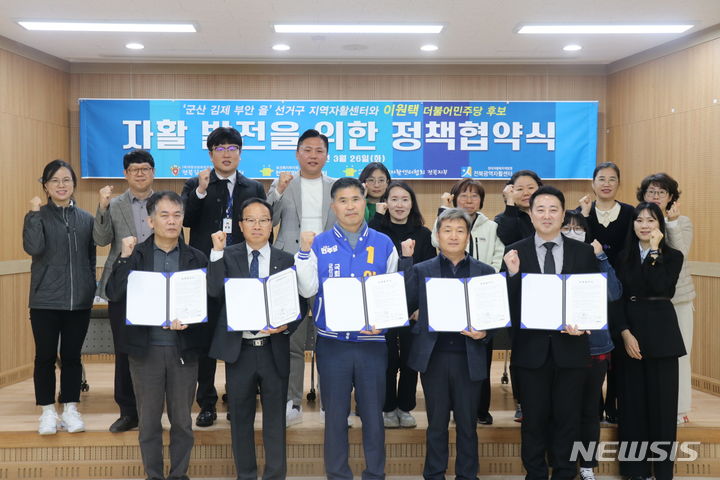 제22대 국회의원 선거 군산·김제·부안을 지역구에 출마한 더불어민주당 이원택 후보는 26일 김제·부안지역자활센터, 김제시사회복지사협회와 각각 정책협약을 맺고 지역자활센터·사회복지 종사자의 처우개선을 위해 최선을 다하겠다고 약속했다. 이날 정책협약식에는 이 후보와 이석규 김제자활센터장, 김종수 부안자활센터장, 백영규 전북광역자활센터장, 노기보 김제사회복지협의회장, 김성순 김제시사회복지사협회장, 권영세 김제시지역사회보장협의체 공동위원장 등이 참석했다. 지역자활센터와 맺은 정책협약 내용은 자활정책 개선과 제도개편(자활일자리 확대와 정책목표 다변화를 위한 기초생활보장법 개정 등), 지역자활센터 종사자 처우개선과 안정적 운영지원이다. 또 김제사회복지사협회와 맺은 정책협약 내용은 ▲사회복지종사자의 전문성 강화를 위한 사회복지 교육장 마련 ▲사회복지종사자 처우개선 현실화 ▲사회복지종사자 인정 제도 강화 ▲동부권 노인복지 인프라 확충 등이다. 이 후보는 "소외되고 그늘진 이웃들을 위해 복지현장에서 묵묵히 일하는 자활 종사자들과 사회복지 종사자들 덕분에 우리가 더욱 건강하고 따뜻한 사회가 되어가고 있다"며 "복지현장에서 최선을 다하는 자활센터 종사자들과 사회복지 종사자들의 처우개선을 위해 제도를 마련하고 지원이 강화될 수 있도록 최선을 다하겠다"고 말했다.
