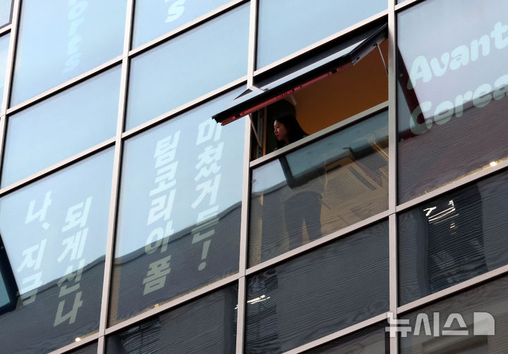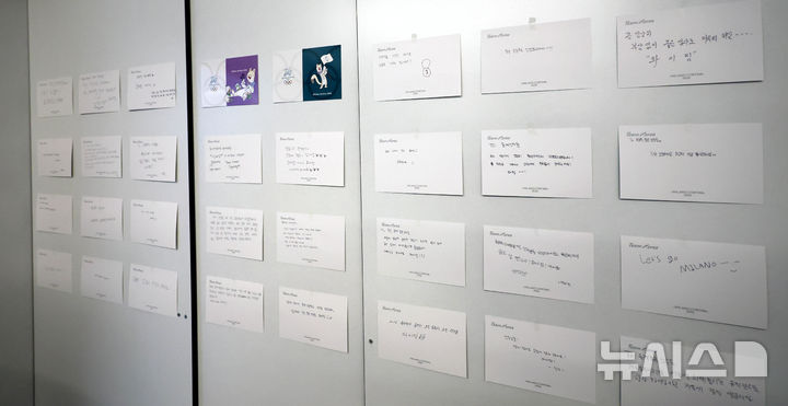 응원 문구 빼곡히 붙어 있는 선수단 숙소 라운지