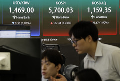 중동 정세의 불확실성이 지속되는 가운데 미국 오라클의 깜짝 실적 등 기술주 강세에 힘입어 코스피가 장중 5700선을 회복했다. 11일 한국거래소에 따르면 이날 오전 11시54분 현재 코스피는 전 거래일 대비 185.34포인트(3.35%) 오른 5717.93에 거래되고 있다. 이날 2.28% 상승 출발한 지수는 상승폭을 키워 장중 5731.