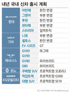 국내 완성차 업계가 내년에 간판급 하이브리드 신차 10종을 출시하며, 판매 회복을 노린다. 특히 현대차는 대표 세단 아반떼와 그랜저는 물론 스포츠실용차(SUV) 투싼, 싼타페 등 4개 주력 모델의 신차를 선보인다. 현대차를 중심으로 국내 완성차 업계가 신차 출시를 통해 내수 판매 부진을 극복하고 회복 흐름을 본격화할 것이란 기대다. 3