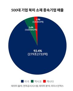 미국 트럼프 정부 출범 이후 한국 대기업들의 북미 매출이 14% 이상 증가한 것으로 집계됐다. 미국의 고관세 정책 시행에도 불구하고 반도체를 포함한 IT·전기전자와 제약·바이오 업종 기업이 북미 매출 증가를 견인한 것으로 나타났다. 10일 기업분석연구소 리더스인덱스가 매출 상위 500대 기업 중 작년 3분기 보고서를 제출하고 북미 지역 매출을