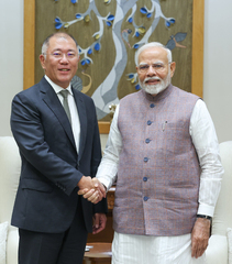 정의선 현대차그룹 회장-모디 인도 총리 8년전 약속 결실…"3륜 EV 만든다"